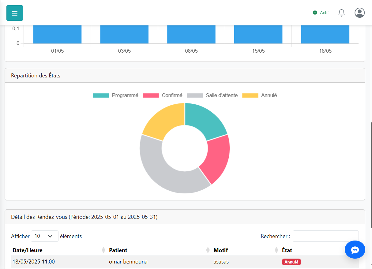 Accédez à des rapports complets sur l'activité de votre cabinet : finances, rendez-vous, performance de l'équipe, utilisation du stock. Prenez des décisions basées sur des données concrètes.